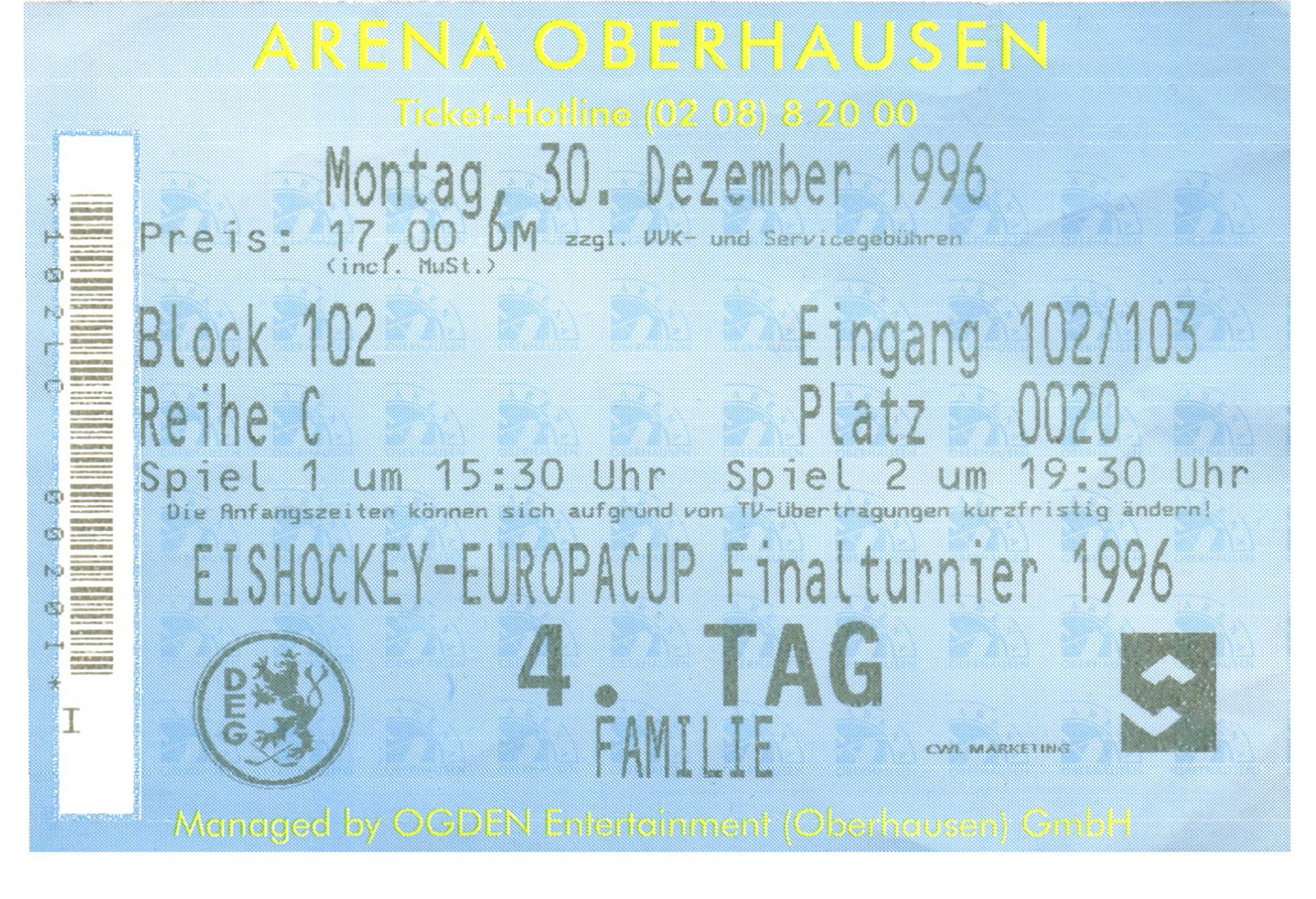 Dass bei diesem Spiel Mario Chitaroni auf Mailänder-Seite spielte, der später noch sechs Jahre in der DEL für Berlin und Nürnberg auflief, und dass beim Turniersieger TPS Turku die späteren NHL-Stars Aki-Petteri Berg, Saku Koivu und Jere Lehtinen im Kader standen, wurde mir erst Jahre später klar, wäre mir aber wahrscheinlich in dem Moment auch egal gewesen, Hauptsache ich hatte die DEG einmal live im Eisstadion an der Brehmstrasse sehen können.